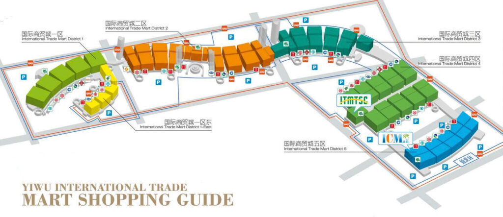 El Mercado Mayorista Internacional de Yiwu (义乌国际商贸城) está dividido en cinco grandes distritos, cada uno organizado por categorías específicas de productos. A continuación te presentamos una guía práctica para conocer qué puedes encontrar en cada uno: